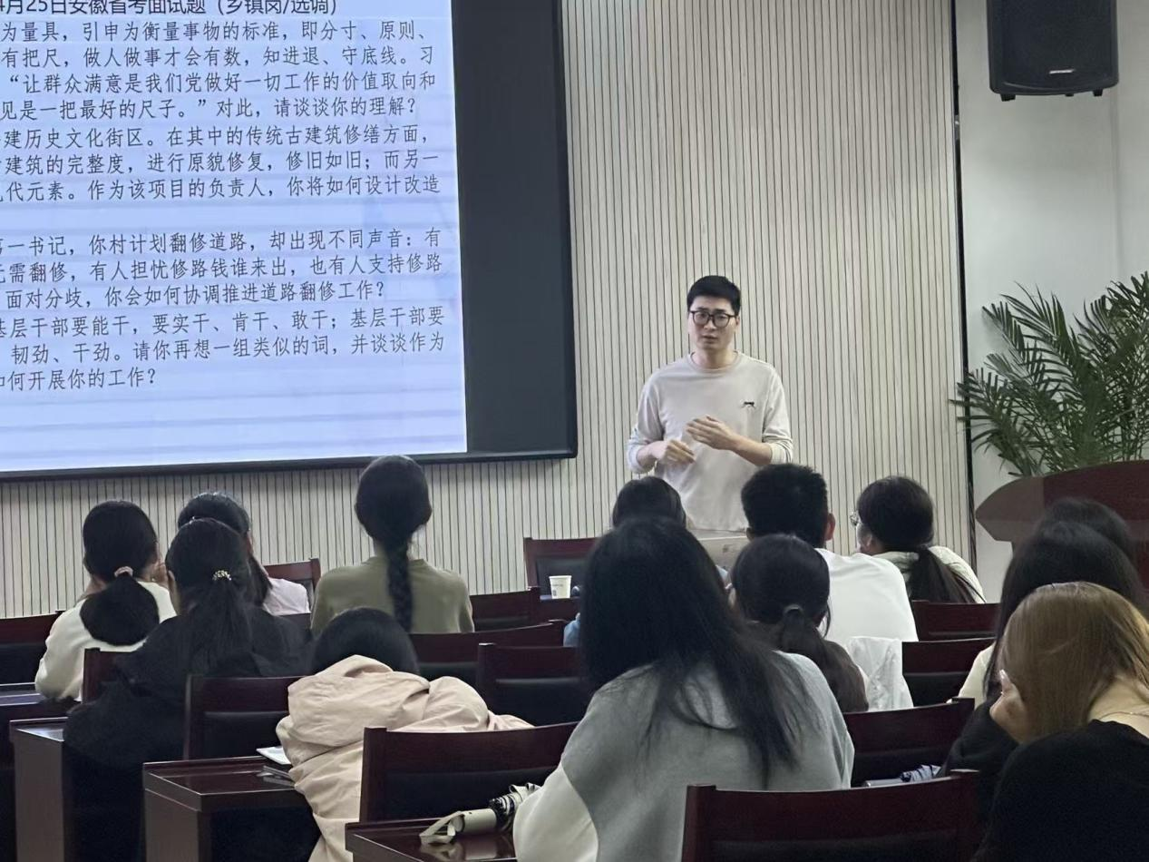 讲座伊始,张纯清老师从几种常见的面试形式切入,系统讲解了结构化面试与结构化小组面试的题型设置与评分逻辑,并结合省考面试真题,深入剖析讲解如何在有限时间内构建逻辑清晰、观点鲜明的答题框架。