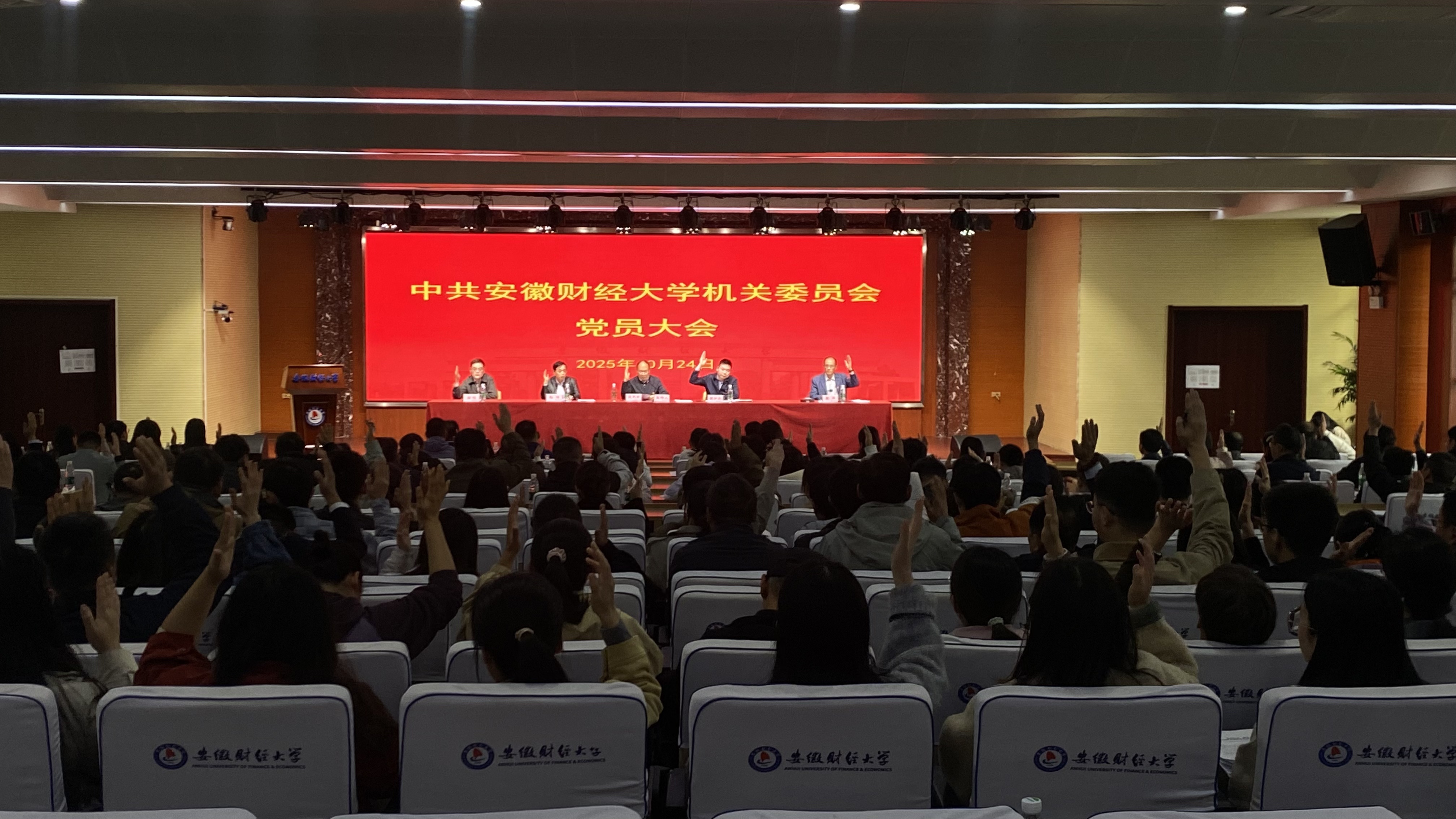 2025年10月24日,中共安徽财经大学机关委员会隆重召开党员大会,全面总结过去五年机关党建工作实践,明确未来推进机关党建高质量发展的目标任务和思路举措,选举产生新一届机关党的委员会和纪律检查委员会委员。机关有选举权的195名党员参加了会议,会议在全体党员齐唱国歌后开幕,学校领导武刚、孙小龙、陈莉以支部党员身份参加大会。